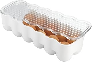 InterDesign 冷蔵庫用 卵入れ エッグ 収納 ホルダー 12個用 蓋付き ロング 白 クリア 09301EJ