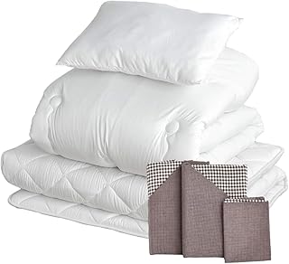 タンスのゲン 布団6点セット【帝人マイティトップ(R)ⅡECO 使用】シングルロング 日本製 洗える 清潔 掛布団 固綿入り三層敷布団 枕 抗菌防臭 防ダニ 合繊布団 カバー付き ブラウン 生成り 10419151 01AM 【70873】