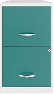 Space Solutions 18インチ 引き出し2つ メタルファイルキャビネット ホワイト/ティール