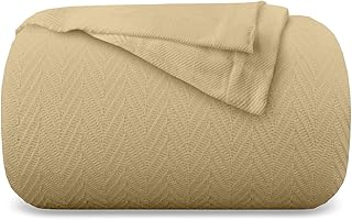 Kotton Culture ニットヘリンボーンブランケット 長繊維綿100% - オールシーズン快適なベッドスロー(ツイン/ツインXL、ベージュ)