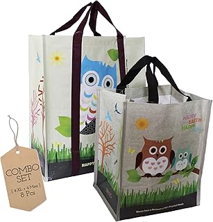 EcojeannieコンボセットSuper StrongラミネートXL & Mini Woven再利用可能なショッピングトートバッグ( Avail : 2 , 3 , 4 , 5セット)、フリーStanding、リサイクルプラスチックW /下部ボード&強化ナイロンハンドル 14.5 X 16.5 X 6.8 + 11.5 x 9.45 x 7.25 WCS041