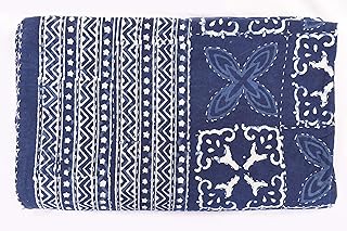 Sophia-Art インディアンキング/ツイン ハンドメイド ボヘミアン ハンドブロックプリント ピュアコットン ベッドスプレッド カンタステッチ ヒッピー カンタ ベッドカバー スロー キルト (ブルー インディゴ 108インチ x 108インチ)
