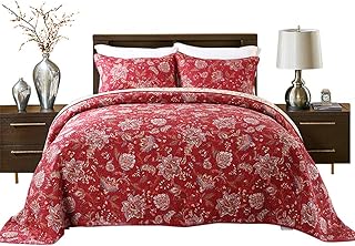 HNNSI 3ピース花柄プリントキルト布団セット クイーンサイズ フラワーパッチワーク コットンベッドスプレッド 快適でソフト