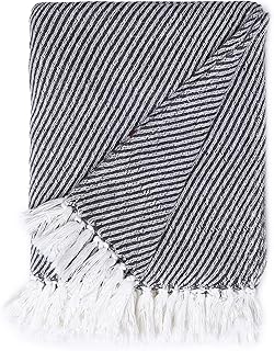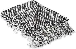 DII テクスチャード加工アクリル織スローブランケット 快適でソフト 椅子、カウチやベッドに 50 x 60インチ ブラック&ホワイト