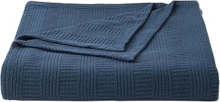 Nautica Home | Baird Collection | コットン100% シグネチャーダイヤモンド織りパターン 心地よいブランケット ソフトで丈夫 オールシーズン対応 お手入れ簡単 洗濯機洗い可 フル/クイーンサイズ ネイビー