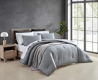 ED Ellen DeGeneres シャンブレーピンストライプコレクション 掛け布団セット コットン100% リバーシブル オールシーズン寝具 お揃いの枕カバー付き フル/クイーン グレー