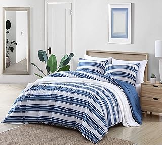 Nautica モダンコレクション 掛け布団セット ウルトラソフト コットン100%生地 フラシ天 中重量 オールシーズン寝具用 ツイン ヴィンテージクルーストライプ