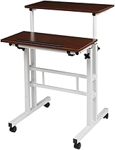 VINGLI ブラウン モバイル スタンディング デスク スチールフレーム ホワイトコーティング 調節可能な木製ノートパソコンデスクトップ ロックホイール付き ローリングプレゼンテーションカート