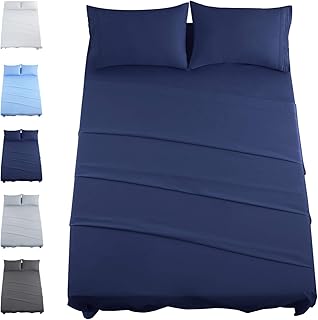 Full Size 4 Pieces Bed Sheets Set Super Soft Brushed Microfiber 1800 Thread Count - Breathable Luxury Sheets Deep Pocket - Wrinkle Free and Hypoallergenic(Navy)