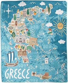 rouihot スローブランケット 60x80インチ ギリシャの地図 旅行 ギリシャのランドマーク 建物 植物 暖か 快適 プリント フランネル ホームデコ ソファ ベッド用