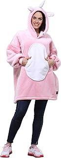 ウェアラブルブランケット パーカー オーバーサイズ スウェットシャツ ブランケット 大人用 レディース メンズ 厚手 スーパーソフト 暖かい フード付きブランケット 大きなポケットと袖付き ピンク