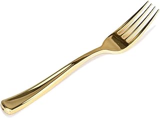 Stock Your Home 125 ゴールドプラスチックフォーク ゴールドカトラリーのような外観 - ソリッド 丈夫 高耐久 プラスチックフォーク - パーティー 結婚式 ケータリングイベントに最適な器具