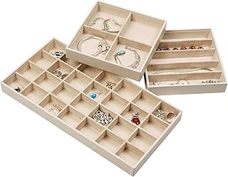 Stock Your Home 重ね式人造レザージュエリートレイのセット 3点 デュアルジュエリー整理箱とジュエリーストレージ機能