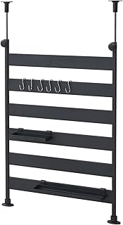 山善 突っ張りキッチンラック 幅46×奥行10×高さ72-115cm 掛ける・置ける 熱に強い フック6個 トレー2個 組立品 ブラック RTK-45(BK)