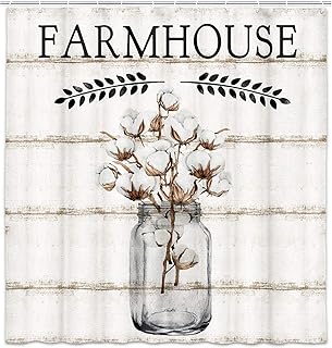 MERCHR ファームハウスシャワーカーテンセット 木製厚板に平和の枝と農場の花 バスルームアクセサリー 装飾 フック付き (幅69 x 高さ72 )