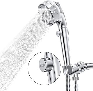 HANLIAN 高圧シャワーヘッド 一時停止機能付き 3種類のスプレー設定 手持ちシャワーヘッド オンオフスイッチ付き 節水取り外し可能シャワーヘッド 5フィートのステンレススチールホースとABSブラケット付き(クロム)