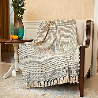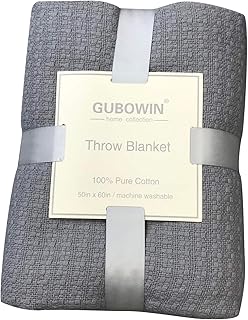 GUBOWIN 100%天然コットン ソフトグレー スローブランケット オールシーズン対応 ベッド、ソファ、カウチ、リビングルームに最適 50インチx60インチ
