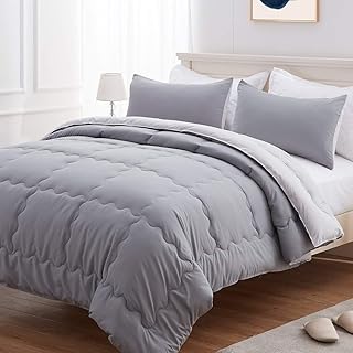 SEMECH クイーンダウン掛け布団セット 羽毛代替寝具掛け布団セット グレー掛け布団セット フルサイズ (88×92インチ) 枕カバー2枚付き ニッケル/グレーシャーグレー
