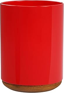 KARRYOUNG セラミック調理器具ホルダー キッチンカウンタートップ用 ソリッド木製ベース 5.5 x 7インチ レッド