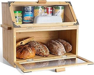 MIXC パンボックス キッチンカウンタートップ用 竹製 2層 大型パンボックス プラスチックパネル 食品ストレージボックス キッチンカウンターの装飾用