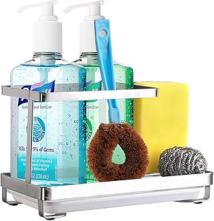 FANGSUN シンクキャディオーガナイザー スポンジブラシソープホルダー 排水パントレイ付き キッチンカウンタートップ用